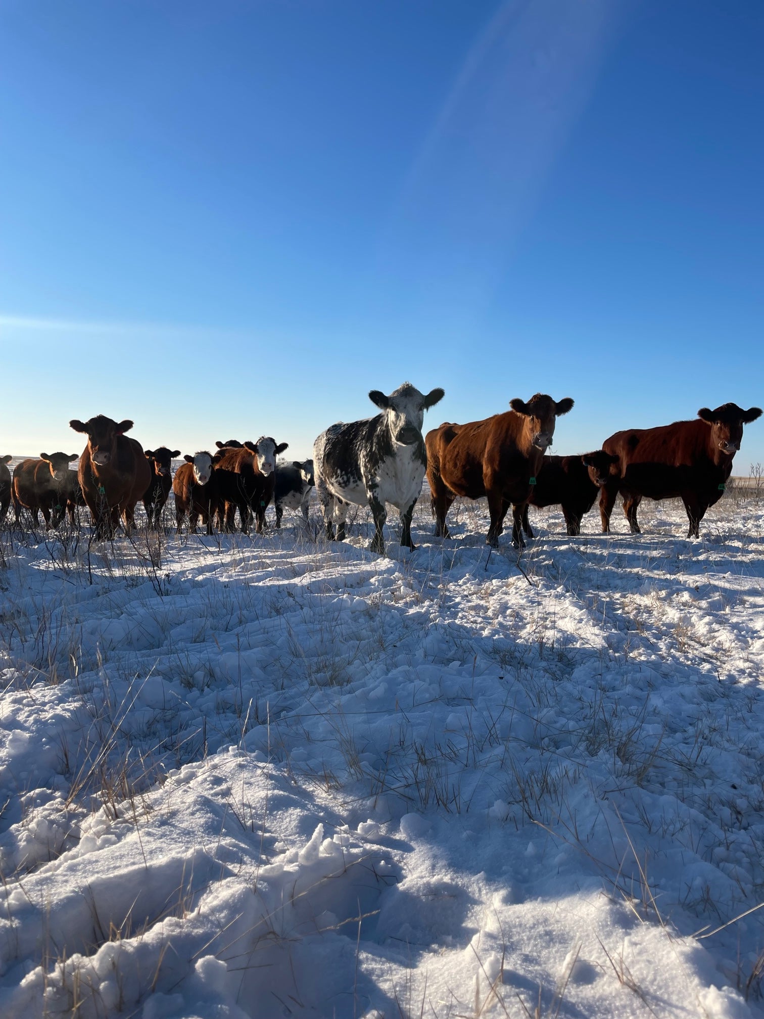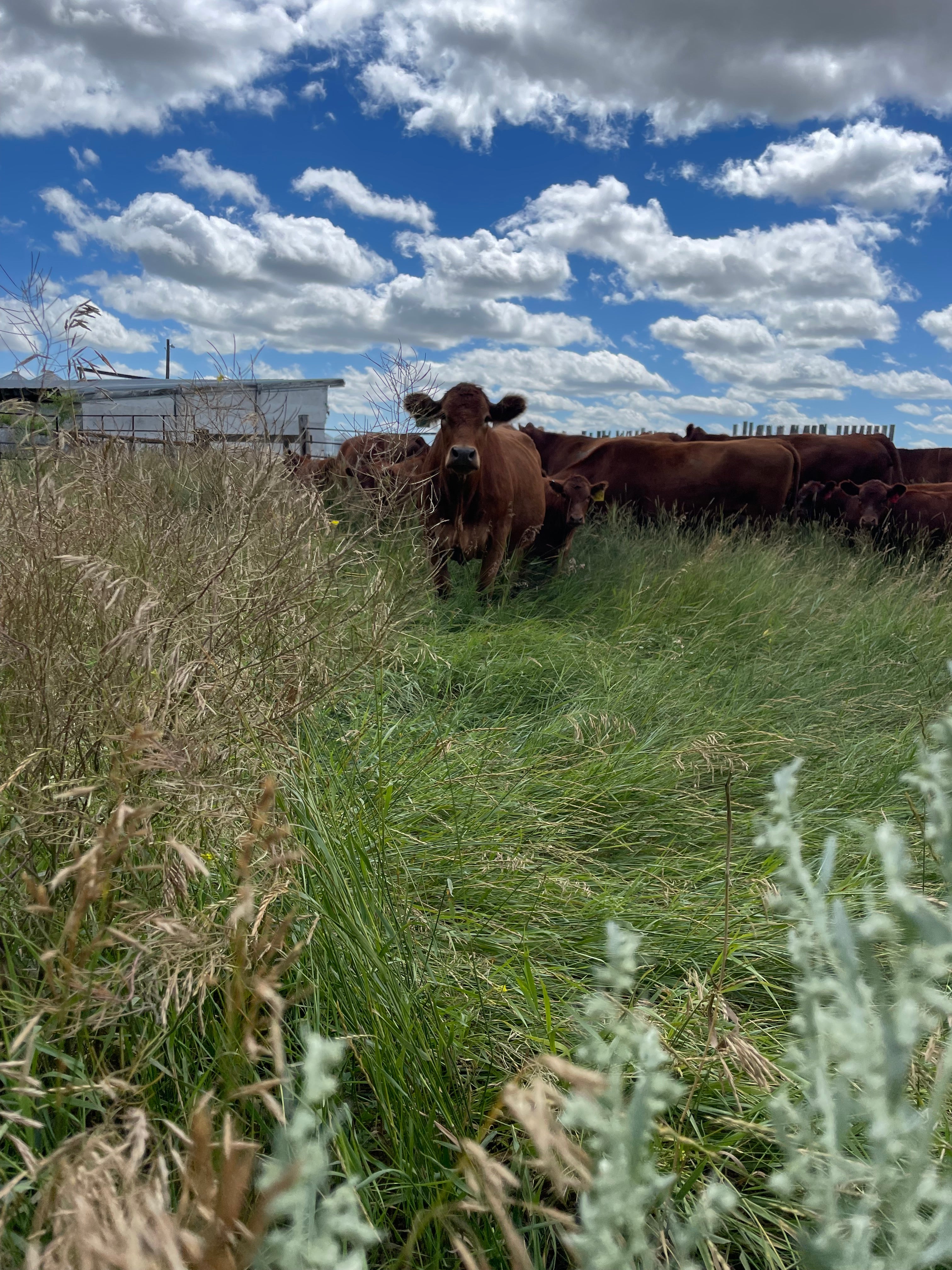 Our animals are currently a mixed assortment of speckled park, black simmental, and red angus cows. We believe these cows provide us with strong, easy calving genetics that provide great tasting and high quality meat.